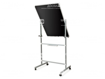Конструкция: установлена на двух цельносварных металлических Т-образных опорах с прямоугольным сечением, покрытых серебристой порошковой покраской, опоры соединяются между собой при помощи двух металлических штанг, к верхней штанге крепится лоток для письменных принадлежностей. Передвигается легко и без усилий благодаря установленным колесам, оснащенным механизмом блокировки для фиксации доски в неподвижном состоянии. Положение поверхности доски жестко фиксируется механизмом на одной из опор, благодаря зажиму рукоятки можно изменить угол наклона поверхности.