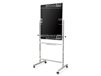 Размер доски: длина – 75 см, высота – 100 см. Количество рабочих поверхностей: 2 – черные для мела.